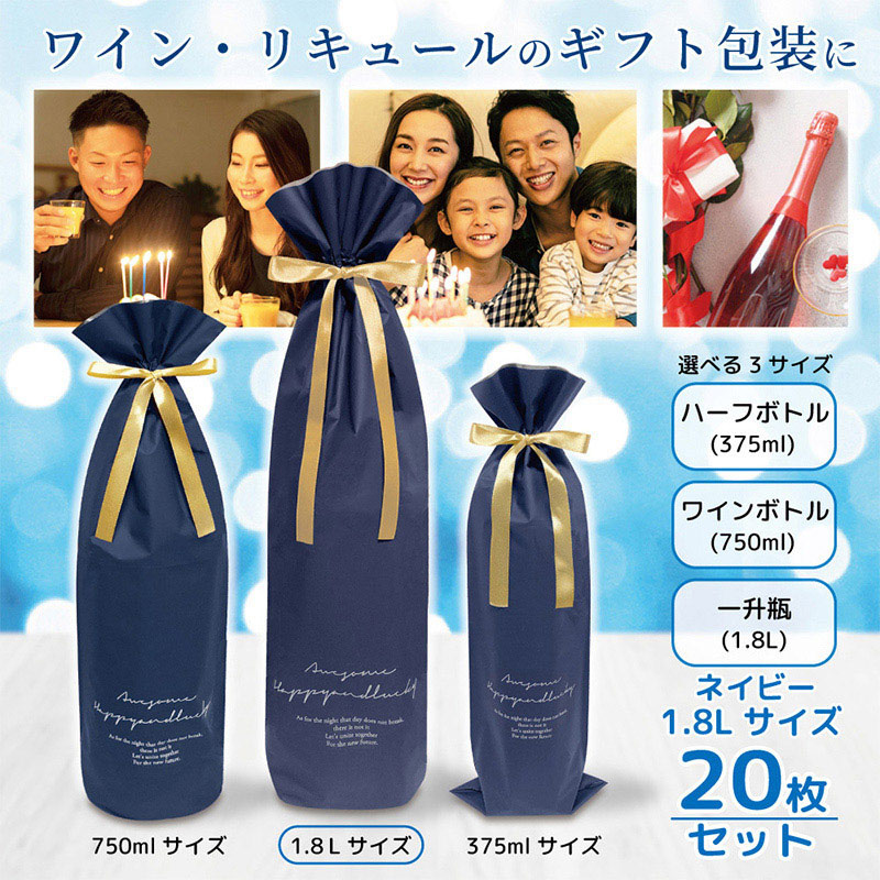 エスパック 梨地リキュールギフト袋 一升瓶用 ネイビー 20枚/袋(ご注文単位1袋)【直送品】
