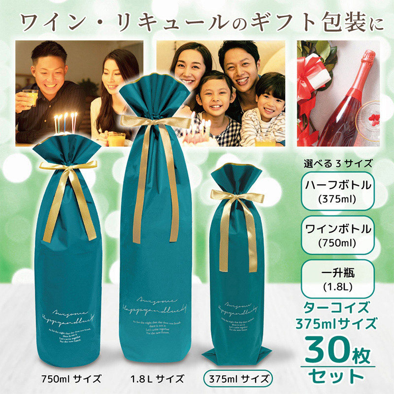 エスパック 梨地リキュールギフト袋 ハーフボトル用 ターコイズ 30枚/袋(ご注文単位1袋)【直送品】