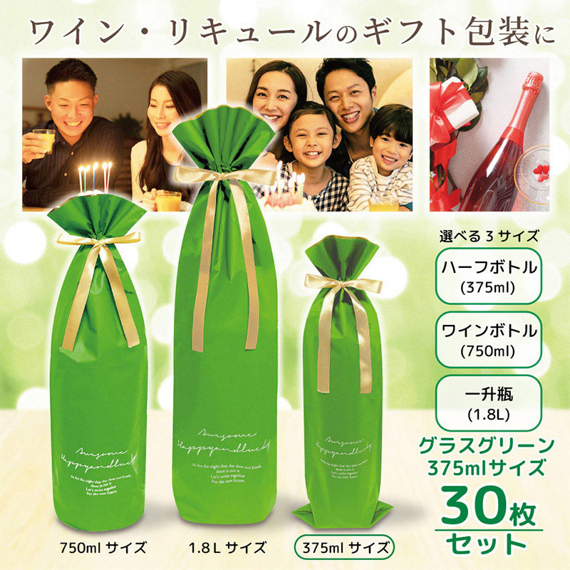エスパック 梨地リキュールギフト袋 ハーフボトル用 グリーン 30枚/袋(ご注文単位1袋)【直送品】