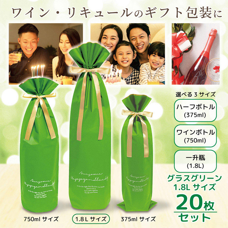 エスパック 梨地リキュールギフト袋 一升瓶用 グリーン 20枚/袋(ご注文単位1袋)【直送品】