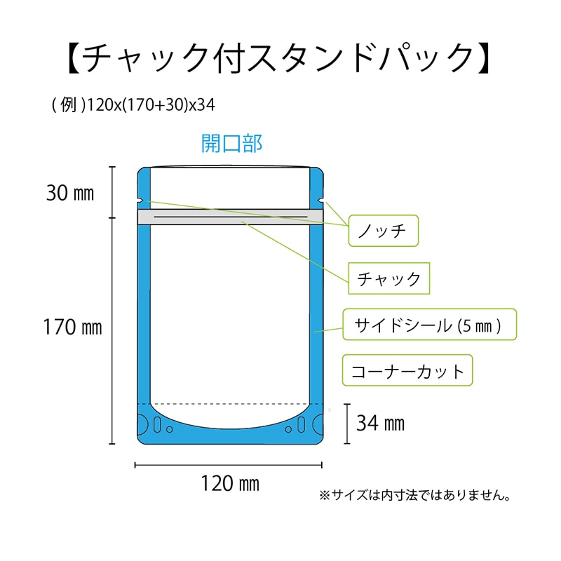 全体幅120×高200mm 有効サイズ:幅110×チャック下160(底マチ55)