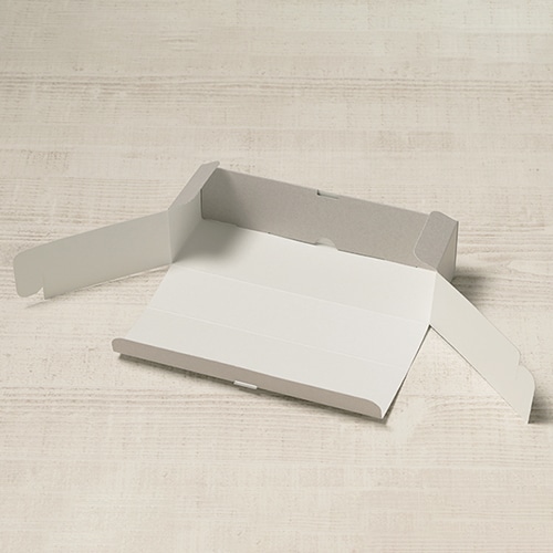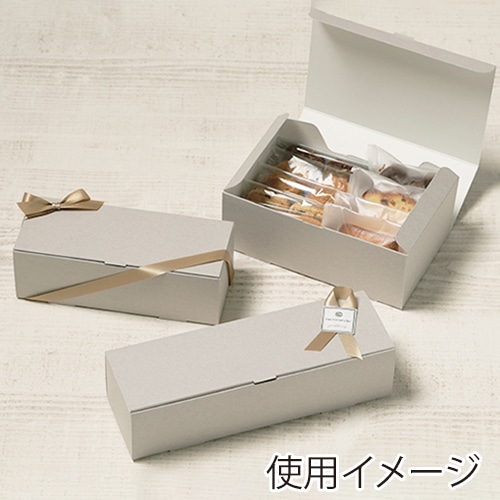 やさしいグレーカラーが特徴の幅24cmのパウンドケーキ箱です。内側が白なので中身を明るく見せてくれます。1本用としてだけでなく、カットのパウンドケーキや焼き菓子の詰め合わせギフト用にもご使用いただけます。また掛け紙やリボン、シール・スタンプのラッピングで雰囲気を変えることができ、様々なシーンでご利用可能です。ギフト発送の際には、発送用ダンボール「hacobo!」を一緒にご使用いただくのがオススメです。