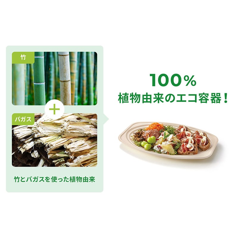 オードブル容器 BB竹バガスオードブル ラミ 小判1 10枚/袋(ご注文単位25袋)【直送品】