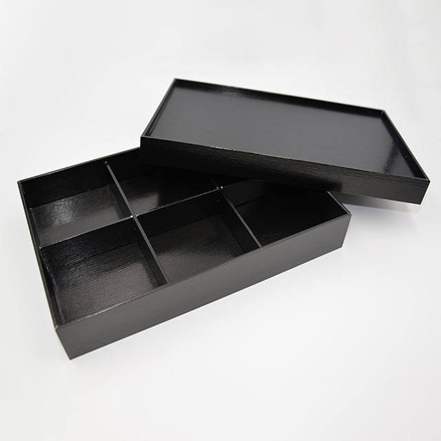 仕出容器 黒漆 貼箱 六つ仕切 260-180 10個/袋(ご注文単位4袋)【直送品】