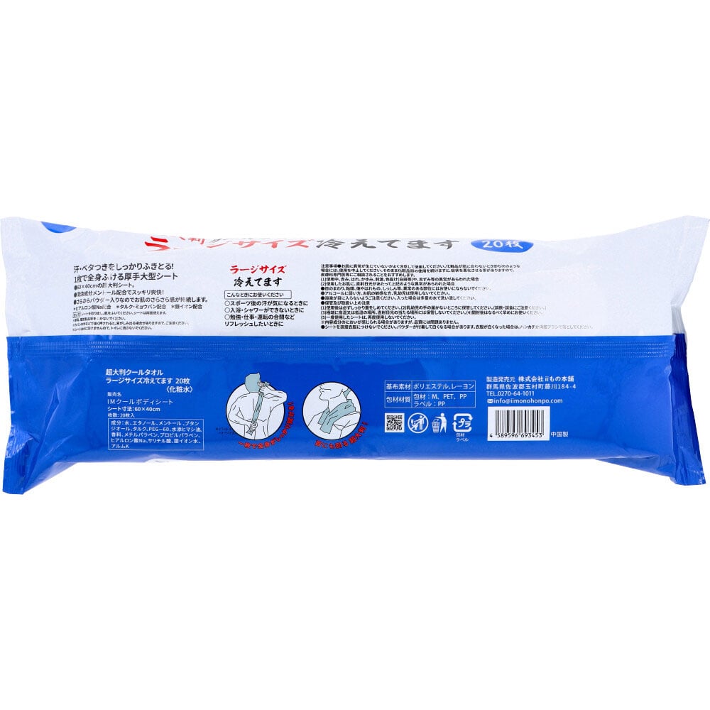 iiもの本舗 大判クールタオル ラージサイズ 冷えてます 超大判 60×40cm 大入 20枚入 1個(ご注文単位1個)【直送品】