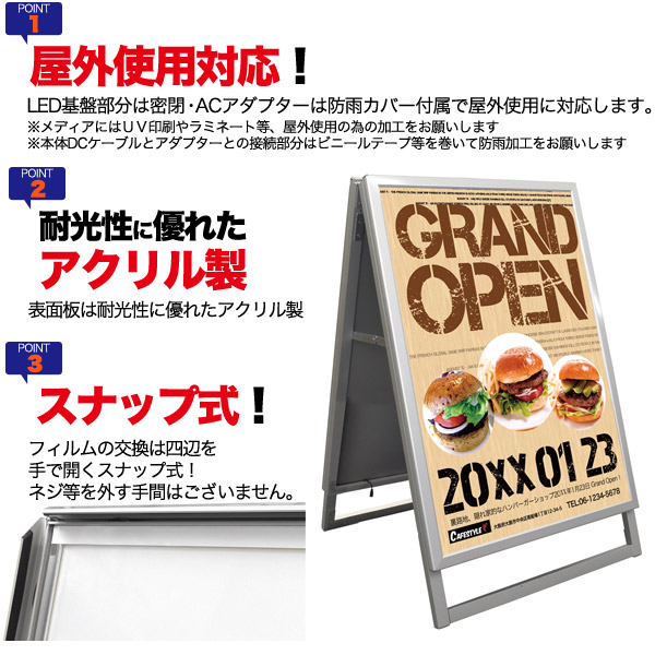 プラタ LEDスタンドパネル A型 屋内外兼用 A1 両面 lb073 1台(ご注文単位1台)【直送品】