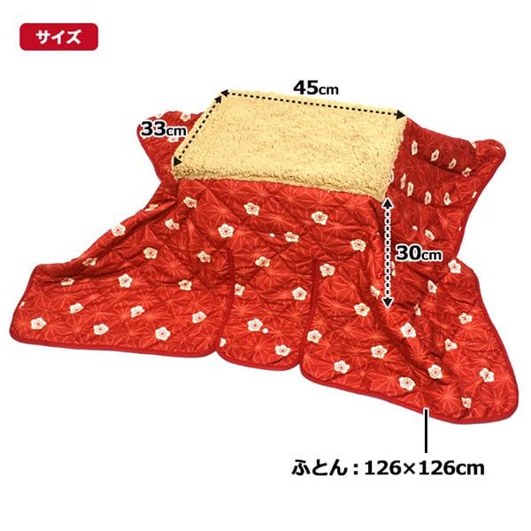 こたつ:縦33×横45×高さ30cm/ふとん:126×126cm
