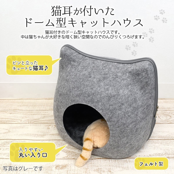 プラタ 猫耳付き ドーム型キャットハウス ブラウン ywx386br 1個(ご注文単位1個)【直送品】