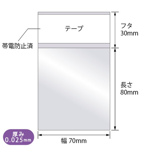 外寸:縦80×横70+テープ30mm/厚さ:0.05mm