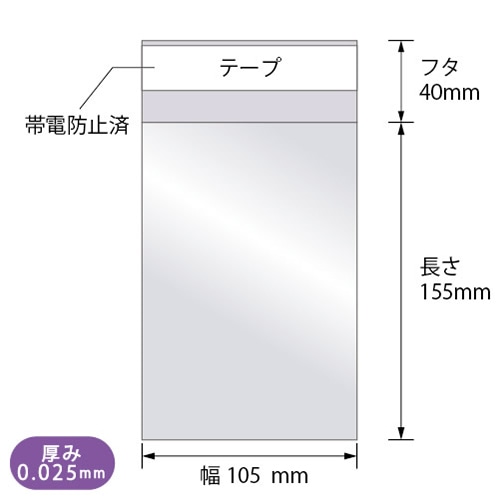 幅105×長さ155+テープ40mm/厚み:0.05mm