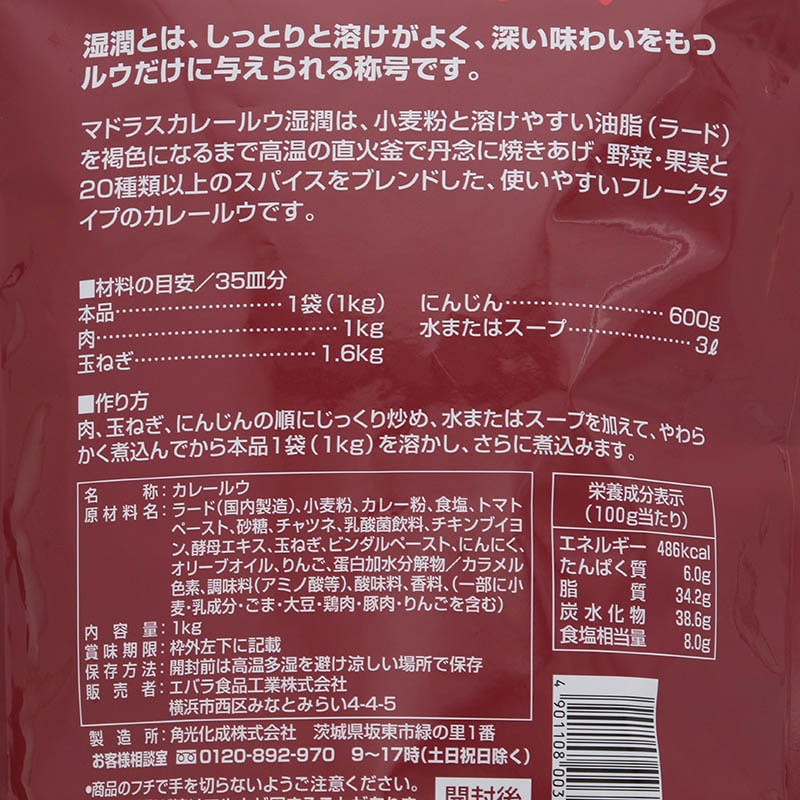 エバラ食品工業 カレーフレーク マドラスカレー湿潤 1kg 常温 1個※軽(ご注文単位1個)※注文上限数12まで【直送品】
