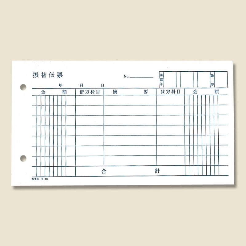 コクヨ 振替伝票 テ-10N ヨコ 100枚/冊
