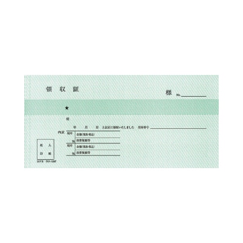 コクヨ 領収証 ウケ-1097N BC複写 小切手判 ヨコ 50組/冊