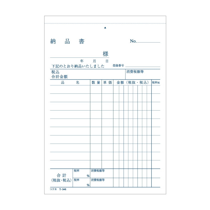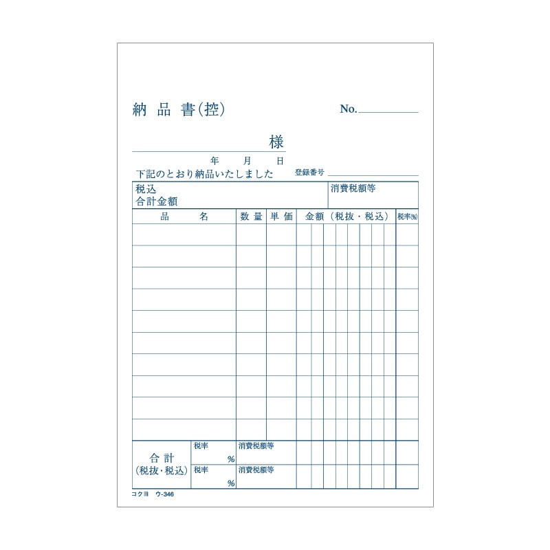 コクヨ 納品書 NC複写簿 A6 タテ ウ-346 1冊(50組)