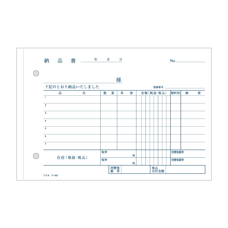 コクヨ 納品書 NC複写簿 B6 ヨコ ウ-321 1冊(50組)