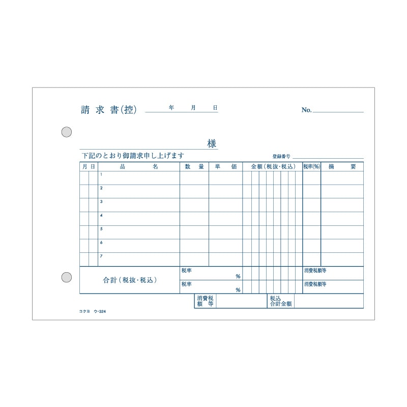コクヨ 請求書 NC複写簿 B6 ヨコ ウ-324 1冊(50組)