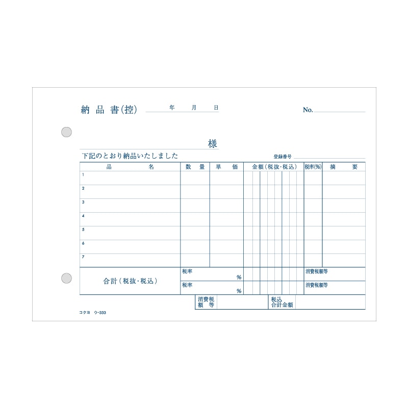 コクヨ 納品書 NC複写簿 B6 ヨコ ウ-333 1冊(50組)