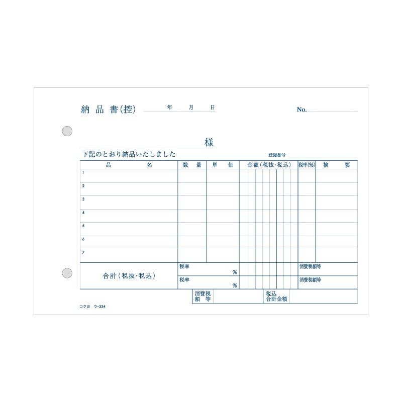 コクヨ 納品書 NC複写簿 B6 ヨコ ウ-334 1冊(50組)