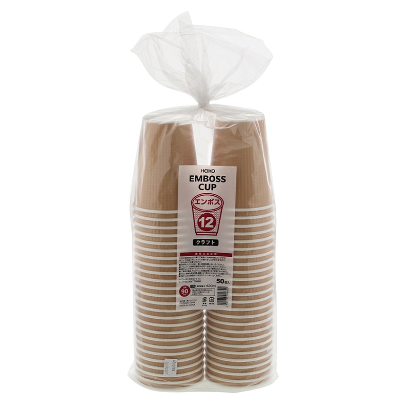 HEIKO 紙コップ エンボスカップ 12オンス 口径90mm クラフト 50個/袋