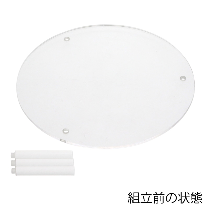 テーブル脚をねじ込むだけで組み立てできるアクリル製の丸テーブルです。小物・アクセサリー・フーズ等幅広いディスプレイに最適です。別売りの他サイズと組み合わせるとより立体的で効果的な演出が出来ます。