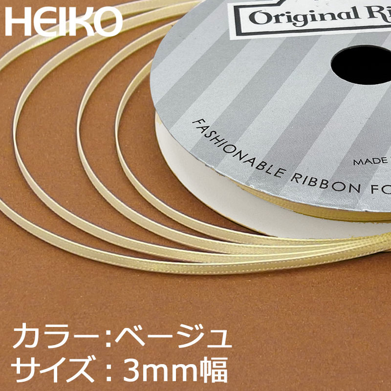 HEIKO シングルサテンリボン 3mm幅×20m ベージュ 1巻