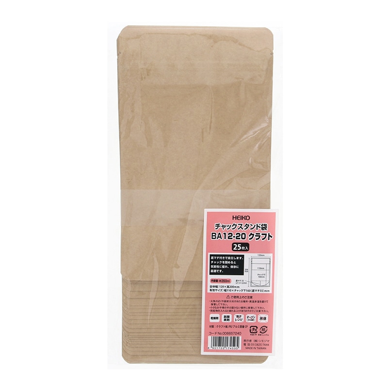 HEIKO チャック付スタンド袋 BA12-20 クラフト 25枚/袋