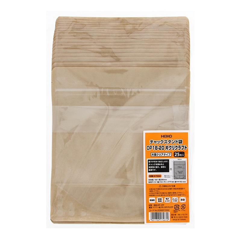 HEIKO チャック付スタンド袋 OP18-20 クラフト 片面クリア 25枚/袋