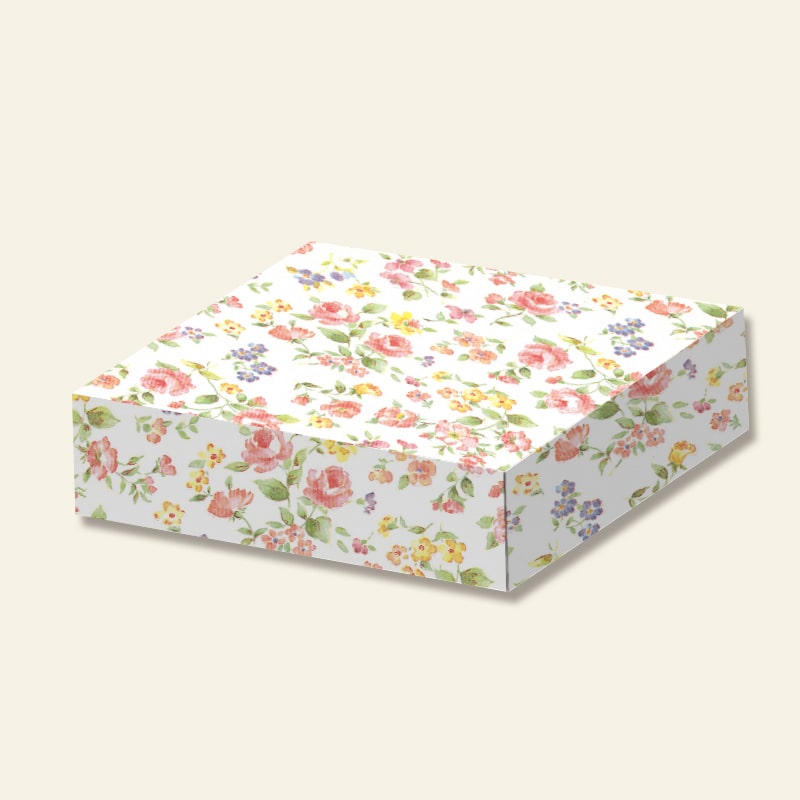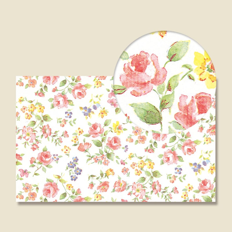 ピンクや黄色の花が散りばめられたロマンティックな雰囲気の包装紙です。