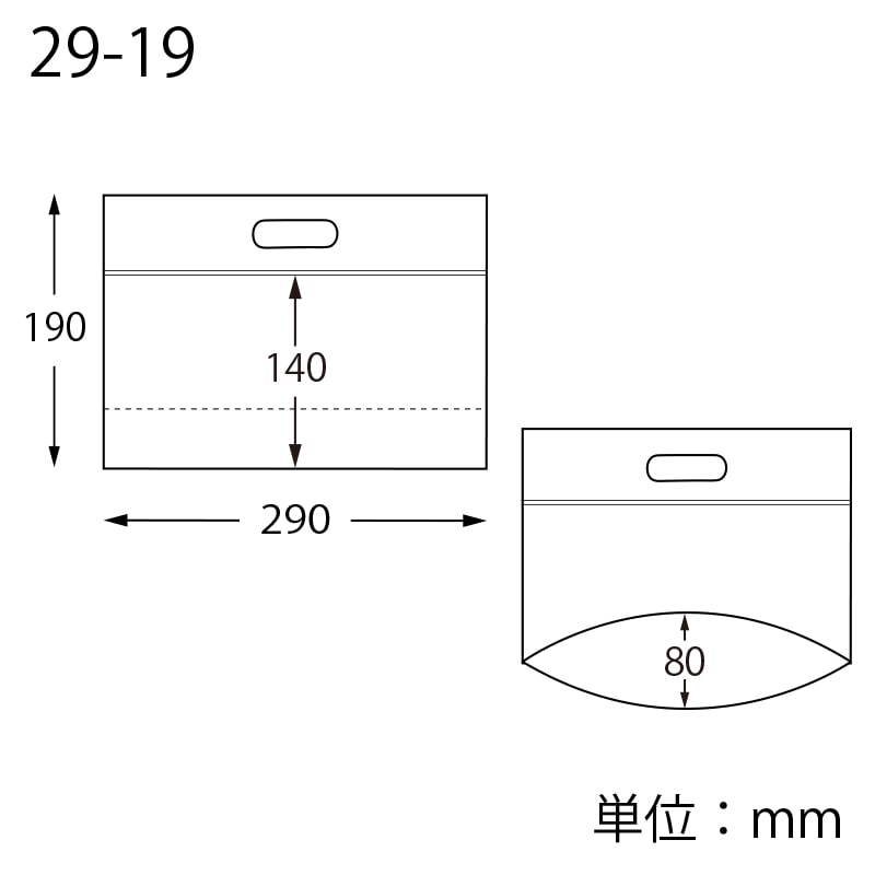 厚0.07×幅290×高190mm/底マチ:80mm/チャック下:140mm