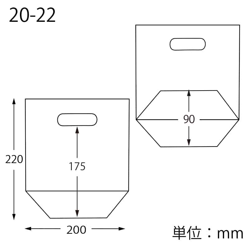 厚0.04×幅200×高220mm/底マチ:90mm/穴から下の高:175mm
