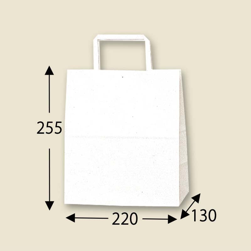 もっとも汎用性の高い、プレーンな白無地の手提げ袋です。小型ながらマチ幅が広めの人気サイズです。未使用時には紐が飛び出ていないため、在庫スペースにやさしい平紐タイプです。●手紐:平紐白●入数:50枚
