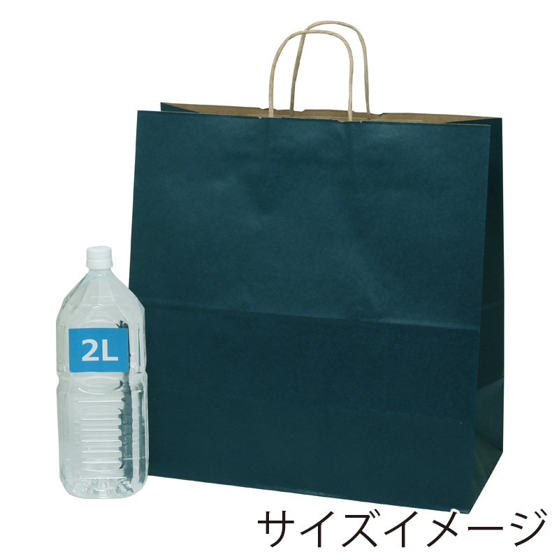 クラフト紙に紺ベタを印刷した手提げ紙袋です。色落ちを緩和させるために、上からニスを塗布しています。正面巾が大きく、マチも最大級の定番大型規格です。●手紐:丸紐未晒●入数:50枚
