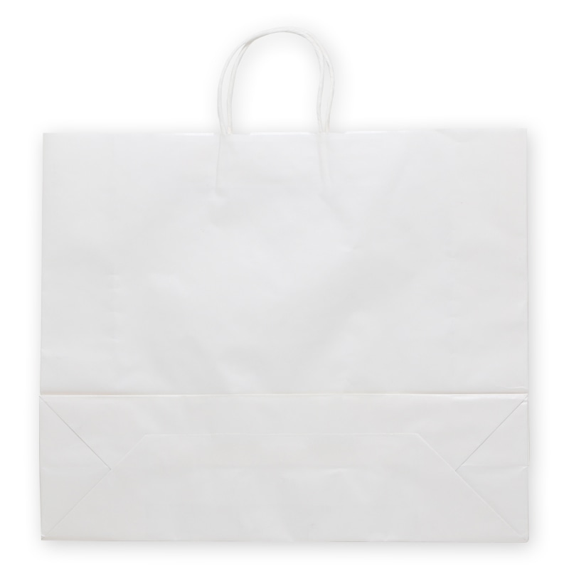 もっとも汎用性の高い、プレーンな白無地の手提げ袋です。横長で使い勝手の良い大型サイズです。●手紐:丸紐白●入数:50枚