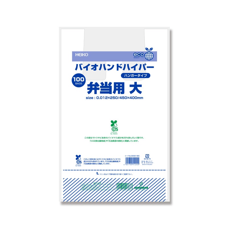 HEIKO レジ袋 バイオハンドハイパー 弁当用 大 100枚/袋