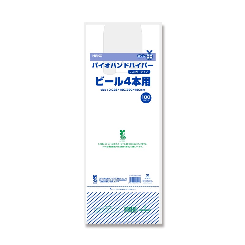HEIKO レジ袋 バイオハンドハイパー ビール4本用 100枚/袋