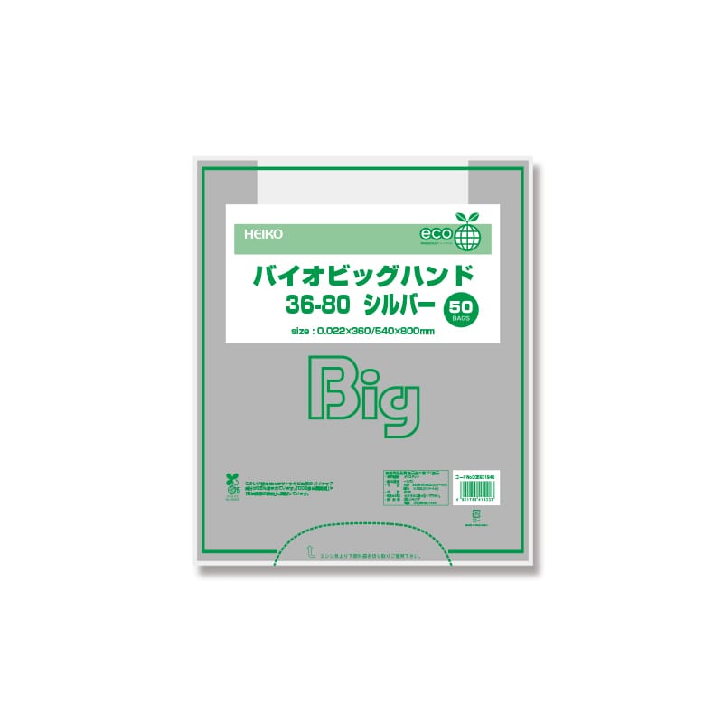 HEIKO レジ袋 バイオビッグハンド 36-80 シルバー 50枚/袋