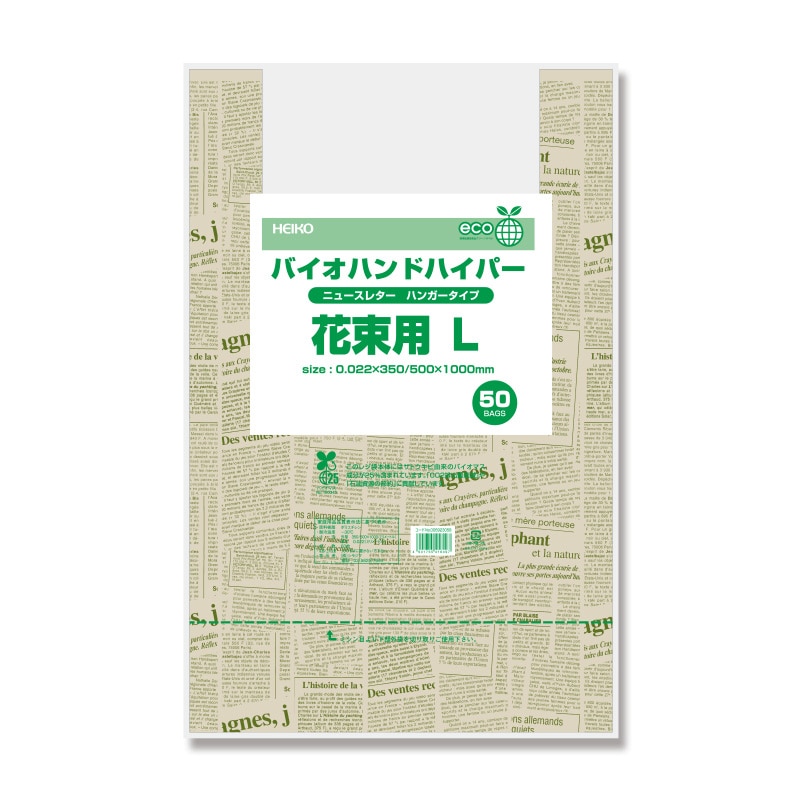 HEIKO レジ袋 バイオハンドハイパー 花束用 L ニュースレター 50枚/袋