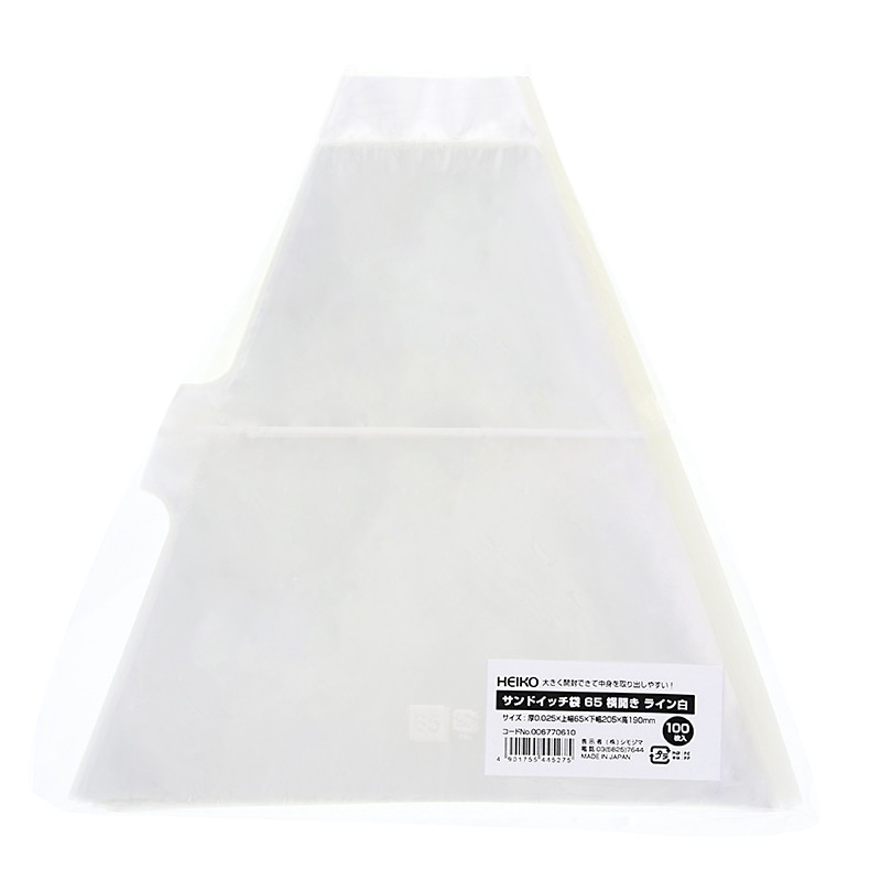 HEIKO サンドイッチ袋 65 横開きタイプ ライン白 100枚/袋