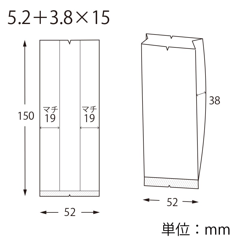 厚0.065×幅52/全体幅90×高150mm(マチ:38mm)