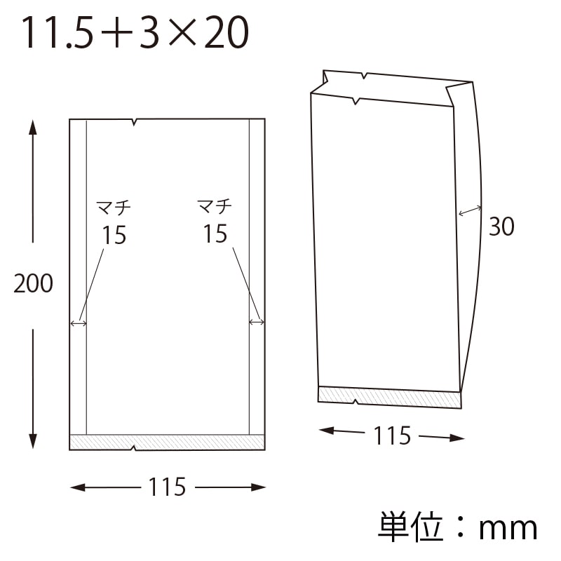 厚0.065×幅115/全体幅145×高200mm(マチ:30mm)