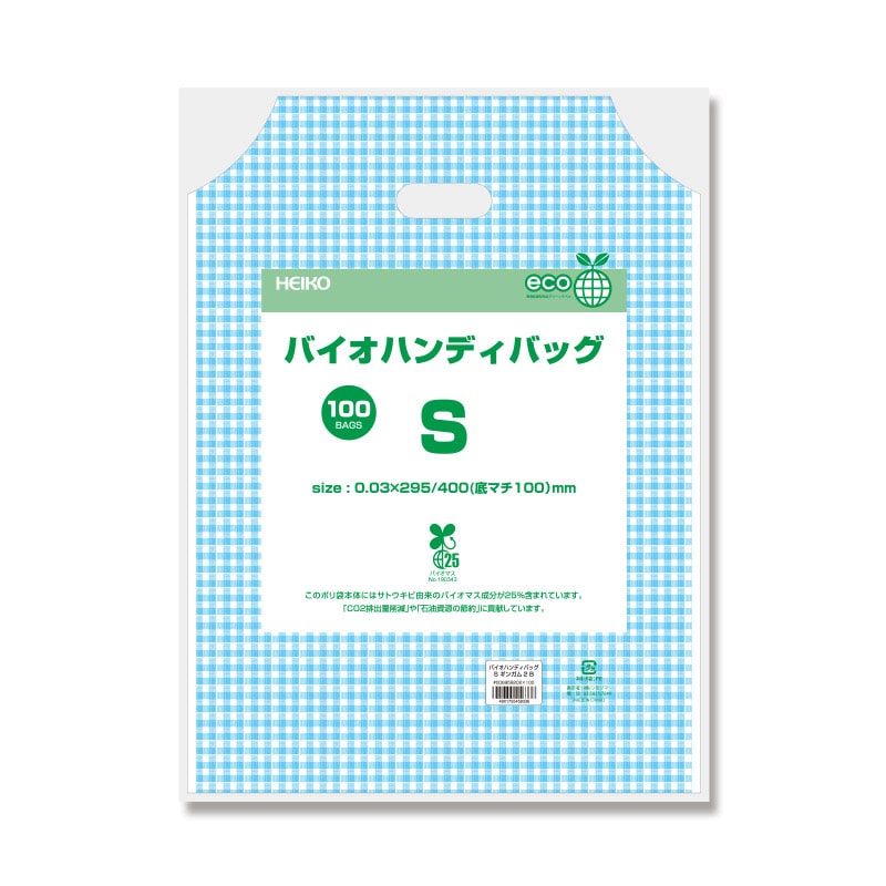 HEIKO 手抜きポリ袋 バイオハンディバッグ S ギンガム2 B 100枚/袋