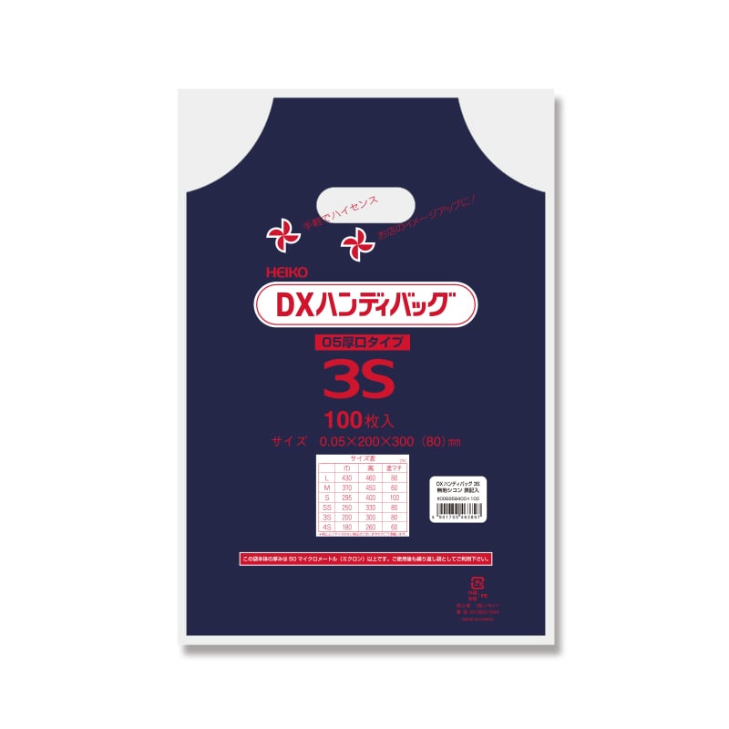 HEIKO 手抜きポリ袋 DXハンディバッグ 3S 無地シコン 表記入り 100枚/袋