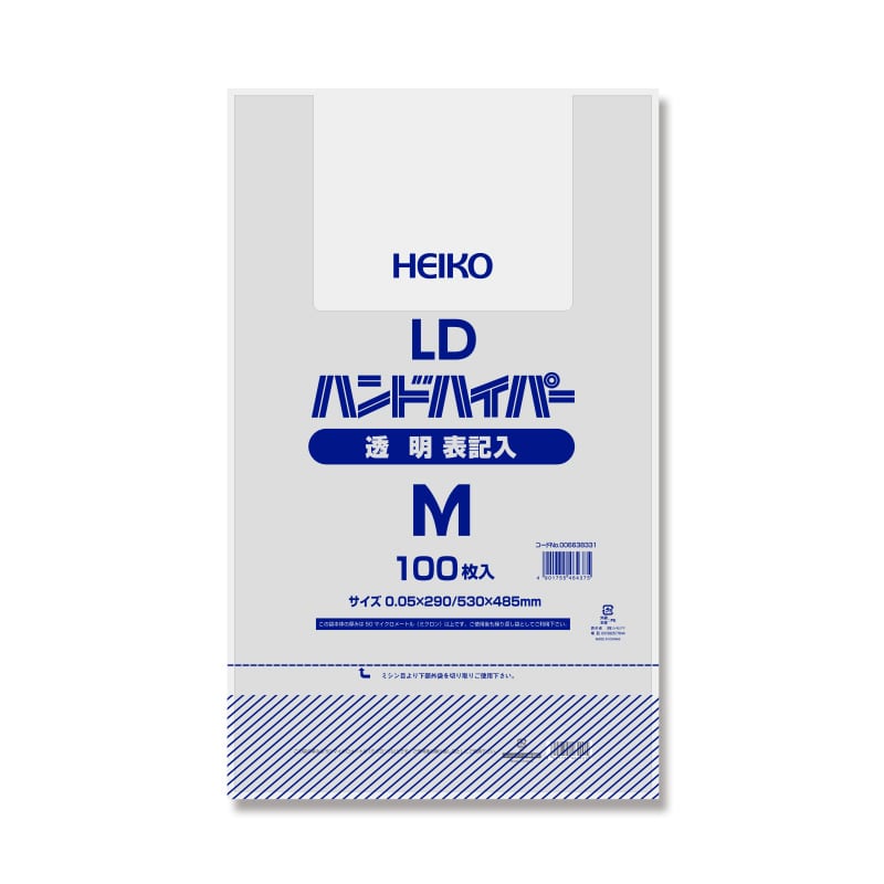 HEIKO レジ袋 LDハンドハイパー M 透明 表記入り 100枚/袋