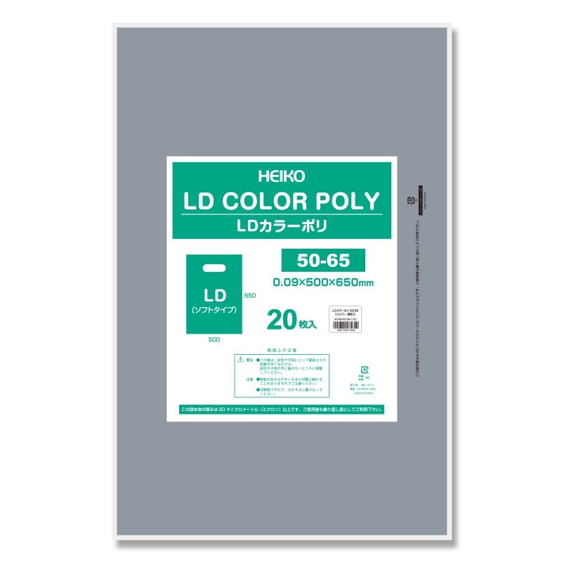 HEIKO 手抜きポリ袋 LDカラーポリ 50-65 シルバー 表記入り 20枚/袋