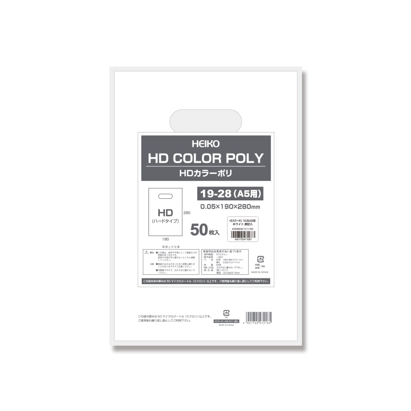 HEIKO 手抜きポリ袋 HDカラーポリ 19-28(A5用) ホワイト 表記入り 50枚/袋