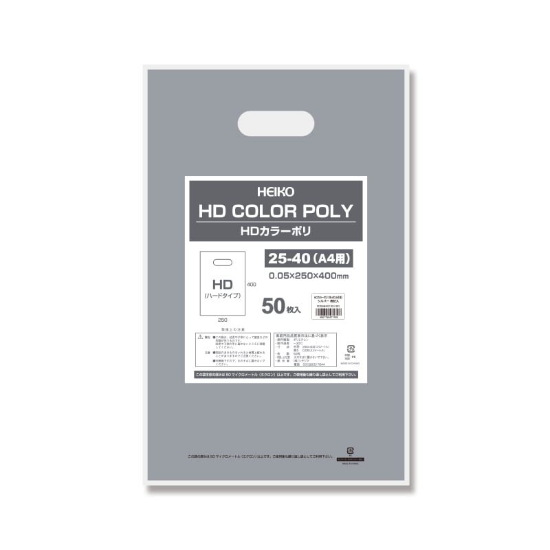 HEIKO 手抜きポリ袋 HDカラーポリ 25-40(A4用) シルバー 表記入り 50枚/袋