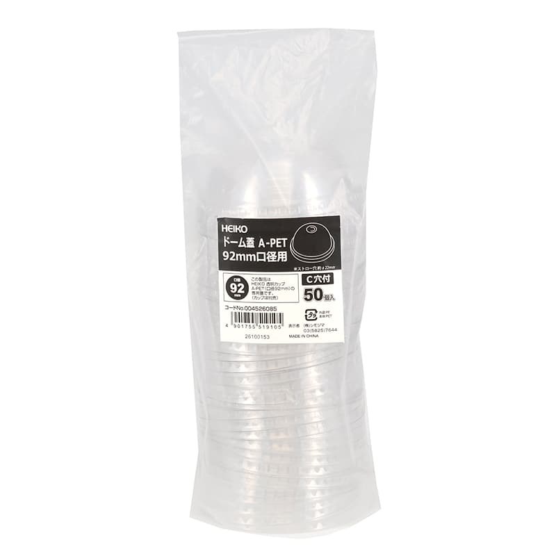 HEIKO 透明カップ A-PET ドーム蓋 口径92mm用 C穴付き 透明 50個/袋