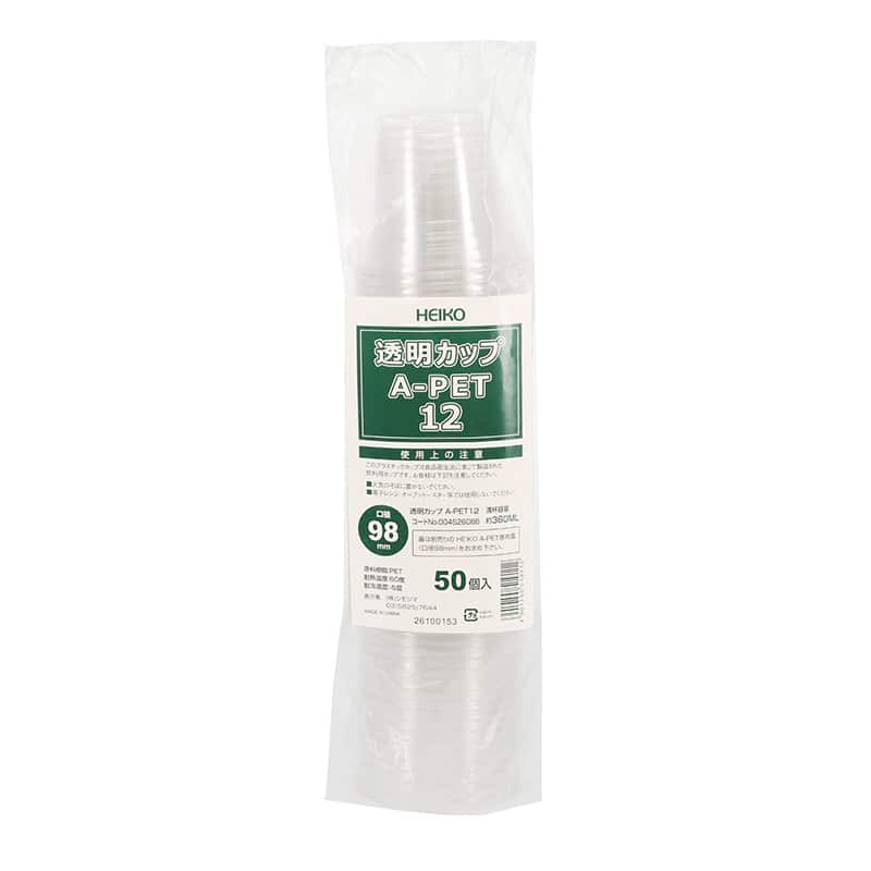 HEIKO 透明カップ A-PET 12オンス 口径98mm 透明 50個/袋