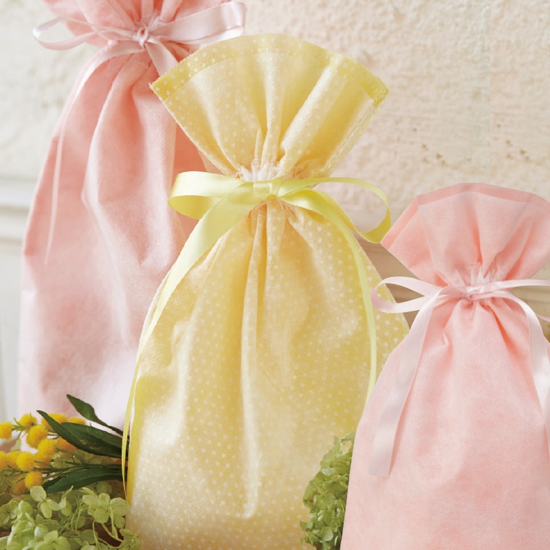 不織布巾着袋 Fバッグ Wシャンテタイプ L ライトピンク 10枚/袋