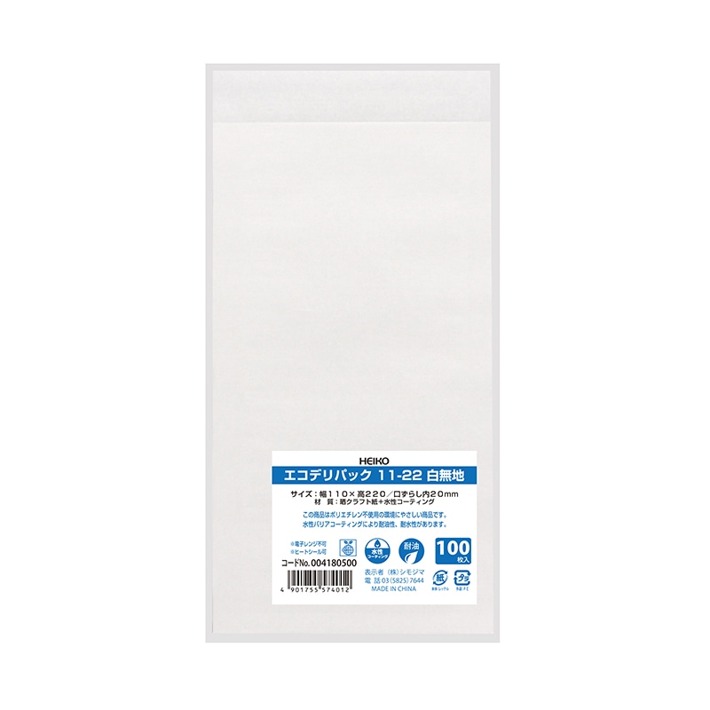 ポリエチレン不使用の環境にやさしい商品です。水性バリアコーティングにより耐油性、耐水性、生分解性があります。耐油加工がされているのでお惣菜や揚げ物を入れるのに適しています。袋の上部の片側が20mm短くなっており、袋が開きやすくなっています。●電子レンジ不可●ヒートシール可●入数:100枚